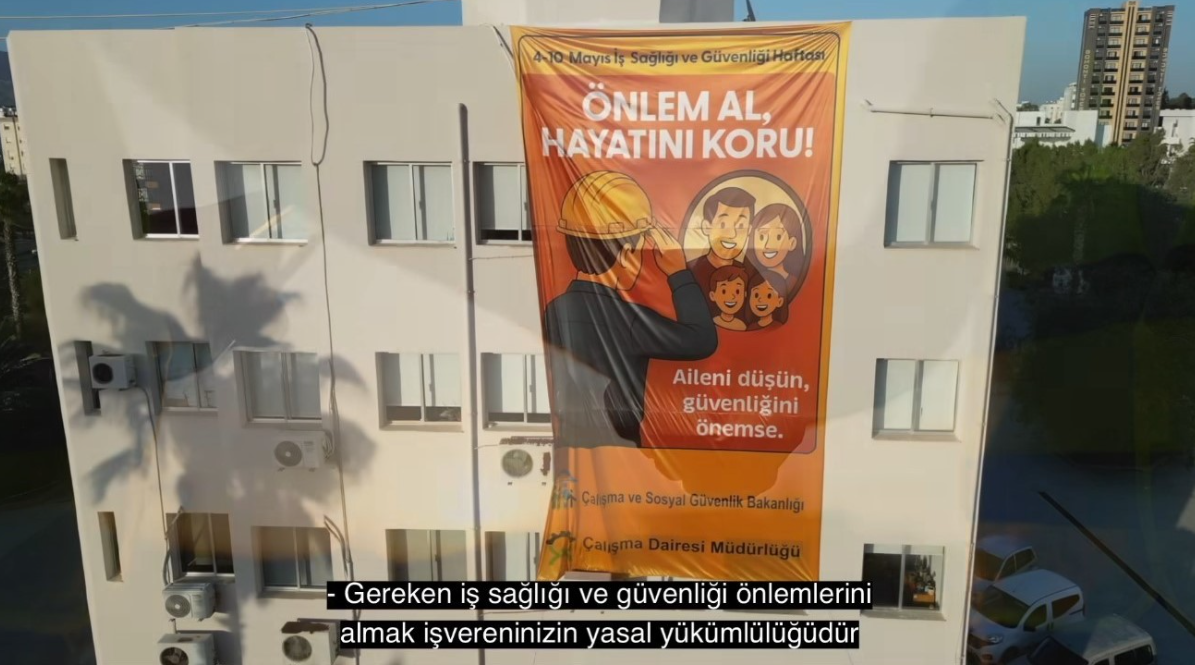 Kıbrıs Türkçesinde “dikkat et, gözet” anlamına gelen “Gözeklen” ifadesiyle yayımlanan kamu spotu, yabancı işçiler dahil olmak üzere, çalışanların iş yerinde güvenliğini ön planda tutmayı, iş kazalarının önlenebilir olduğunu vurgulamayı ve iş sağlığı ile güvenliği kültürünün toplumda yerleşmesini hedefliyor.