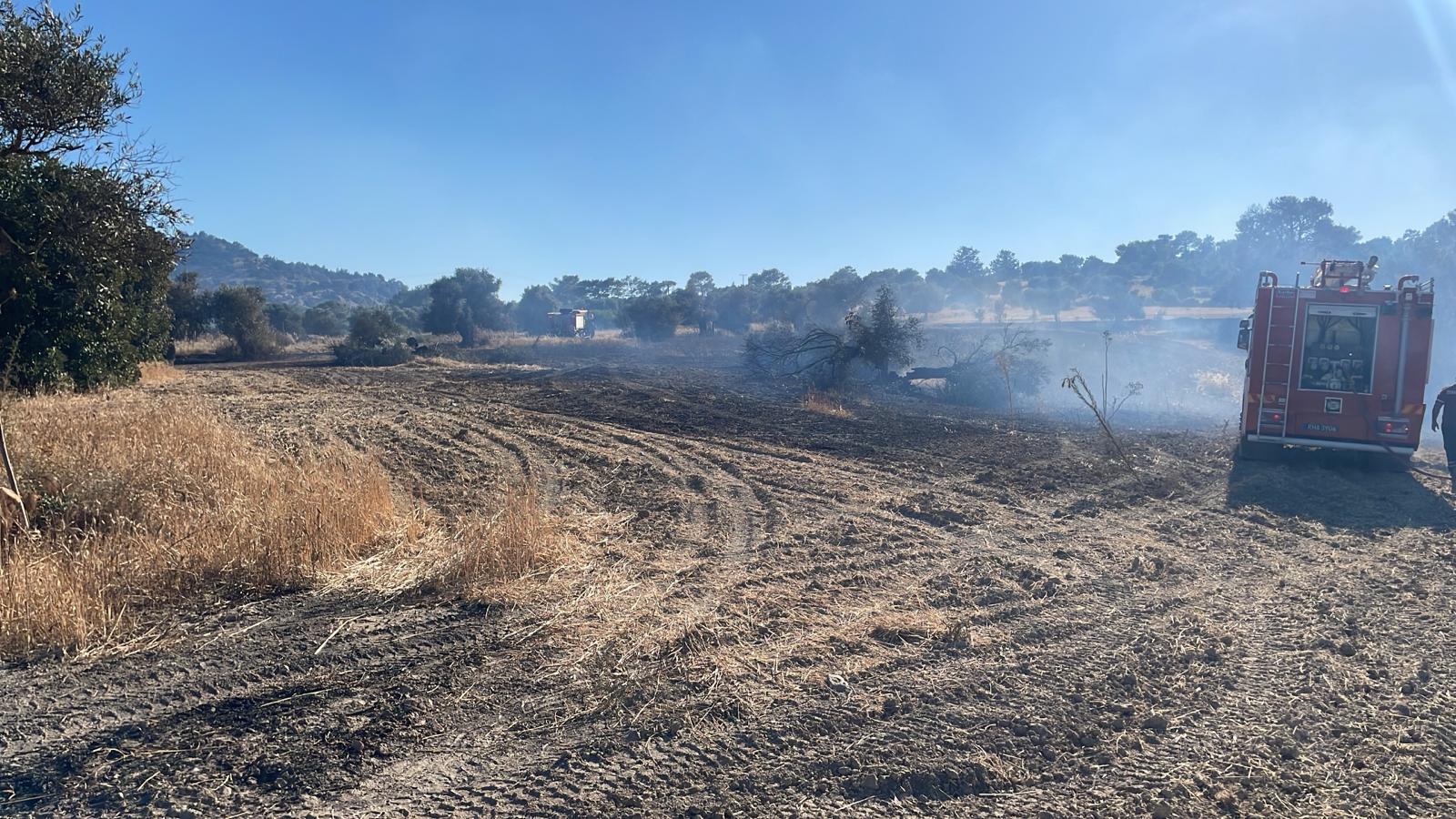 Ağıllar-Altınova köyleri arasında bulunan arazide bugün saat 15.00 sıralarında yangın çıktı. Yangında çam, zeytin ve harnup ağaçları ile biçilmemiş arpa ve buğday yandı.