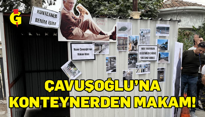 Öğretmenler, Meclis ve Bakanlık önünde Nazım Çavuşoğlu’nu istifaya davet ederken, bakanlık önüne temsili ‘çamura batmış’ konteyner makam yerleştirerek makamın açılışını yaptı.