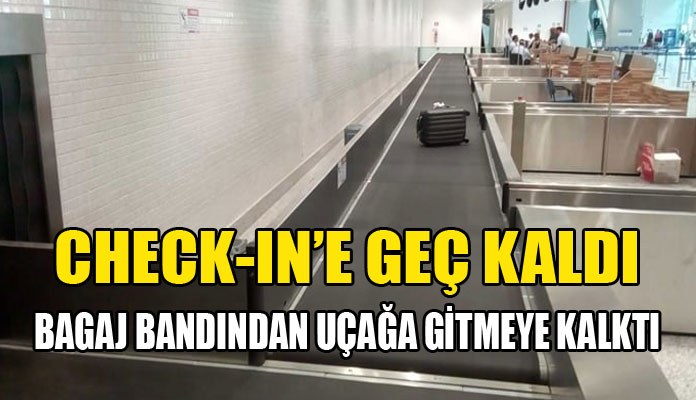 “Geç kaldınız bu saatten sonra uçağa binmeniz mümkün değil” denince öfkelenip mutlaka uçağa binmesi gerektiğini söyleyen yolcu birden herkesin gözü önünde bagaj bandına atladı. Arkasından da polisler.