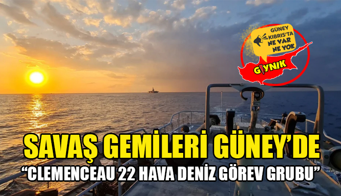 Fransız Deniz Kuvvetleri’ne ait Charles De Gaulle uçak gemisi ile ABD firkateyni USS Ross’un da aralarında bulunduğu “Clemenceau 22” hava deniz görev grubuna bağlı birçok askerî geminin dün sabah Kıbrıs’ın Güneyi’ne demirlediği, bu kapsamda RMMO ile ortak tatbikatlar icra edileceği bildirildi.