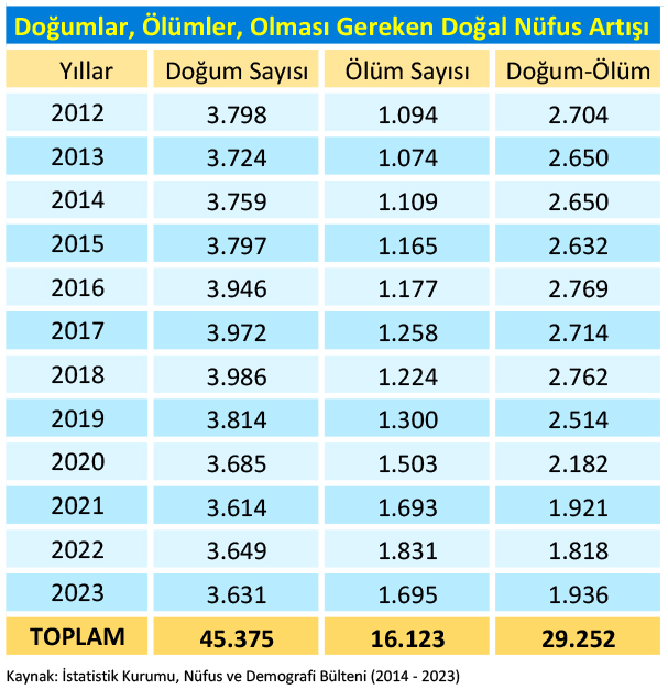 2012-2023 arasında nüfus yaklaşık 190 bin kişi artarken, doğanların sayısı 45 bin 375 düzeyinde saptandı