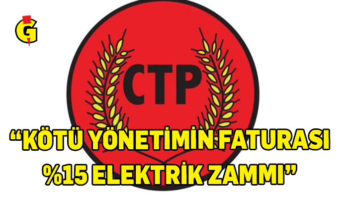 CTP yaptığı yazılı açıklamada, ülkeyi yönettiğini iddia edenlerin yönetsel hataları ve kurultay tartışmalarının, halka yüzde 15’lik elektrik zammı olarak geri döndüğü, son zammın, öncekilerle birlikte düşünüldüğünde korkunç boyutlarda olduğunu belitti.