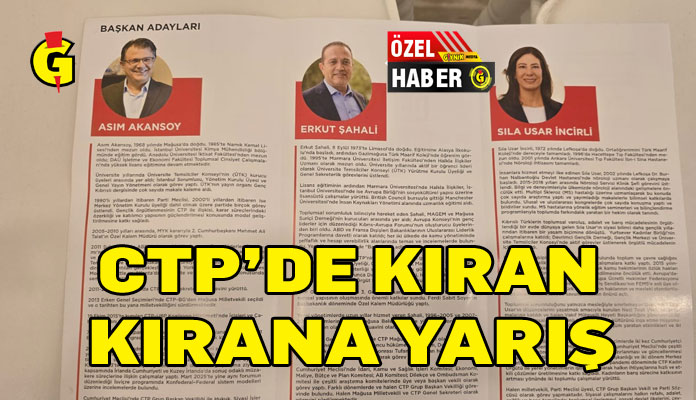 3 ÖNEMLİ İSİM…Ana muhalefet Cumhuriyetçi Türk Partisi (CTP), eski Genel Başkan Tufan Erhürman’ın Cumhurbaşkanı seçilmesinin ardından, yeni liderini belirlemek üzere 30 Kasım’da seçim yapacak. Partinin 18 milletvekilinden 3’ü başkanlık için aday oldu. Adayların 3’ü de bundan 7 ay önce Genel Sekreter olmak için yarışmıştı. Parti Meclisi’nin Genel Sekreter olarak seçtiği Gazimağusa Milletvekili Erkut Şahali, bu kez genel başkan olmak için aday oldu. Seçimi az bir farkla kaybeden Lefkoşa Milletvekili Dr. Sıla Usar ile eski Genel Sekreter Gazimağusa Milletvekili Asım Akansoy da başkanlık için aday.