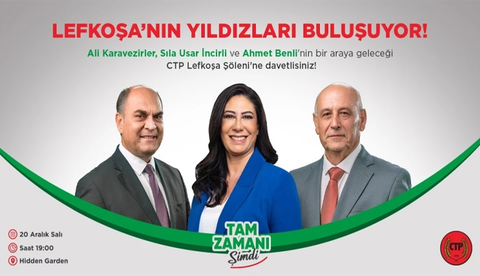 “Lefkoşa’nın Yıldızları Buluşuyor” konseptiyle düzenlenecek Lefkoşa Türk Belediyesi Başkan adayı Dr. Sıla Usar İncirli, Gönyeli Belediyesi Başkanı ve Gönyeli-Alayköy Belediye Başkan adayı Ahmet Benli ile Değirmenlik Belediyesi Başkanı ve Değirmenlik-Akıncılar Belediye Başkan adayı Ali Karavezirler ile belediye meclis üyesi adayları tanıtılacak.