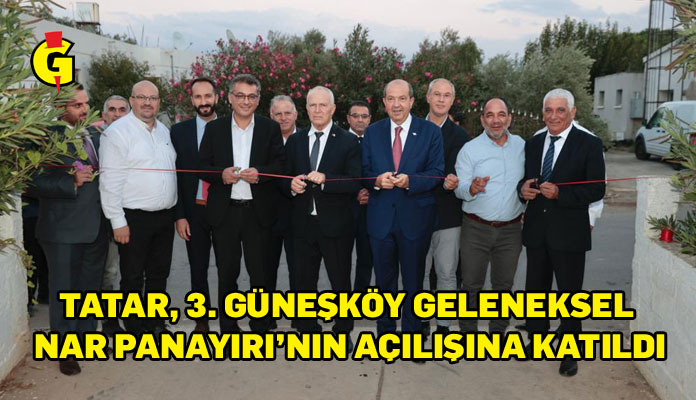 Cumhurbaşkanı Ersin Tatar, Güneşköy Muhtarlığı tarafından Güneşköy Düğün Salonu’nda düzenlenen 3. Güneşköy Geleneksel Nar Panayırı’nın açılışına katıldı.