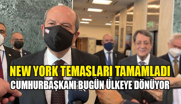 Cumhurbaşkanlığı’ndan verilen bilgiye göre, New York’ta Kıbrıs konusuyla ilgili temaslarda bulunan Cumhurbaşkanı Ersin Tatar, bugün İstanbul Havalimanı’ndan saat 19.25’te KKTC’ye hareket edecek ve saat 21.30’da Ercan Havalimanı’na gelecek.