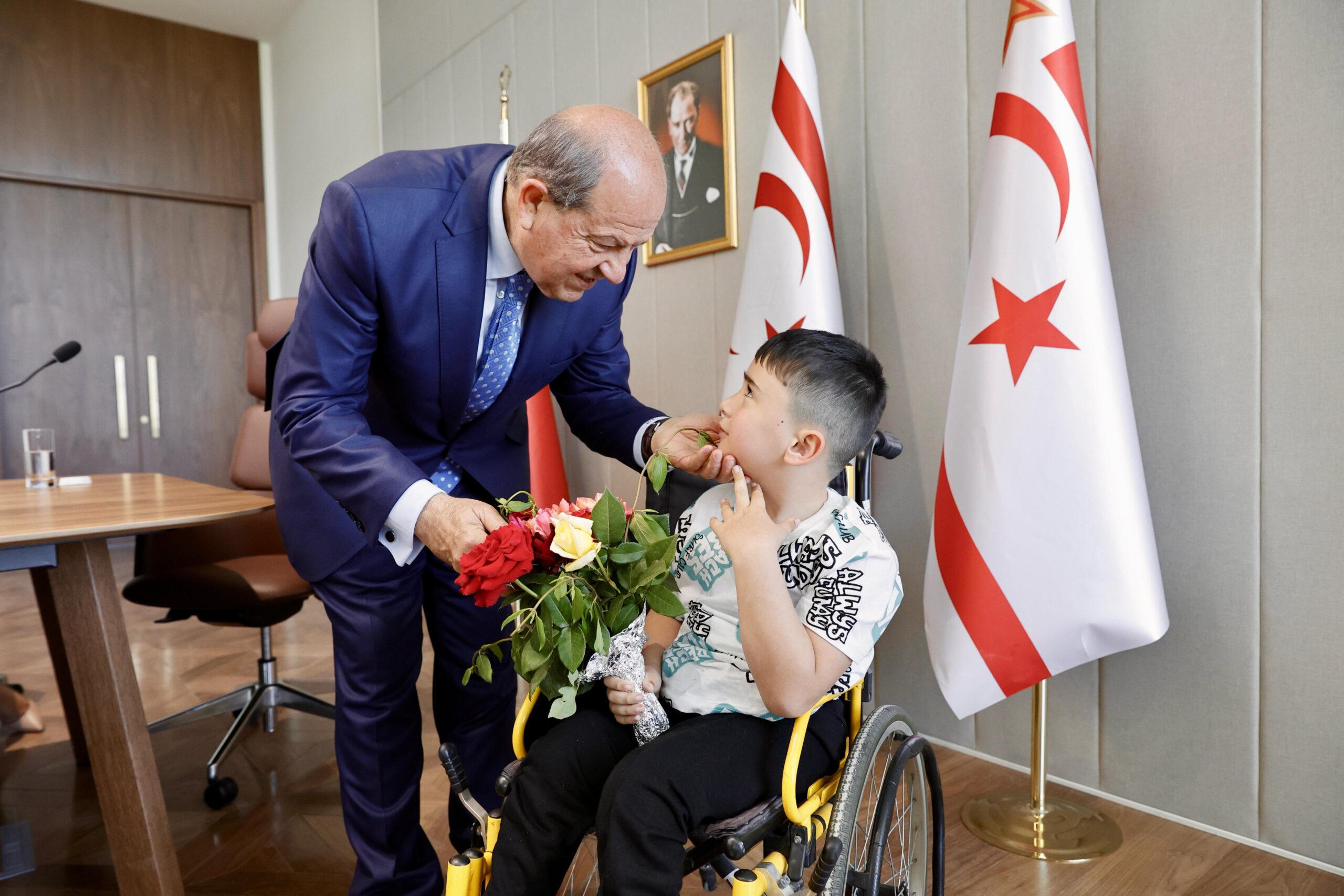 Cumhurbaşkanı Ersin Tatar, 23 Nisan Ulusal Egemenlik ve Çocuk Bayramı nedeniyle Cumhurbaşkanlığı Yeni Yerleşkesinde özel eğitim öğrencilerini kabul etti.