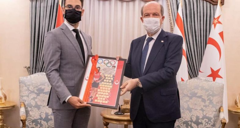 Cumhurbaşkanı Ersin Tatar, milli atlet Yiğitcan Hekimoğlu’nu kabul ederek görüştü.
