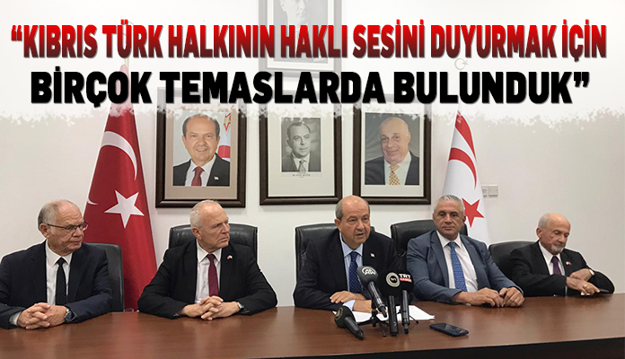 Heyetinin de BM üyeleri ABD, Rusya,İngiltere, Fransa gibi ülkelerin temsilcileri ile Kıbrıs meselesinin özünü ve yeni siyasetin neden ortaya çıktığını anlattığı görüşmeler yaptığını ifade eden Tatar, Türk Evinde de basın ve sivil toplum kuruluşları ile bir araya geldiğini, olumlu temaslar yaptığını söyledi.
