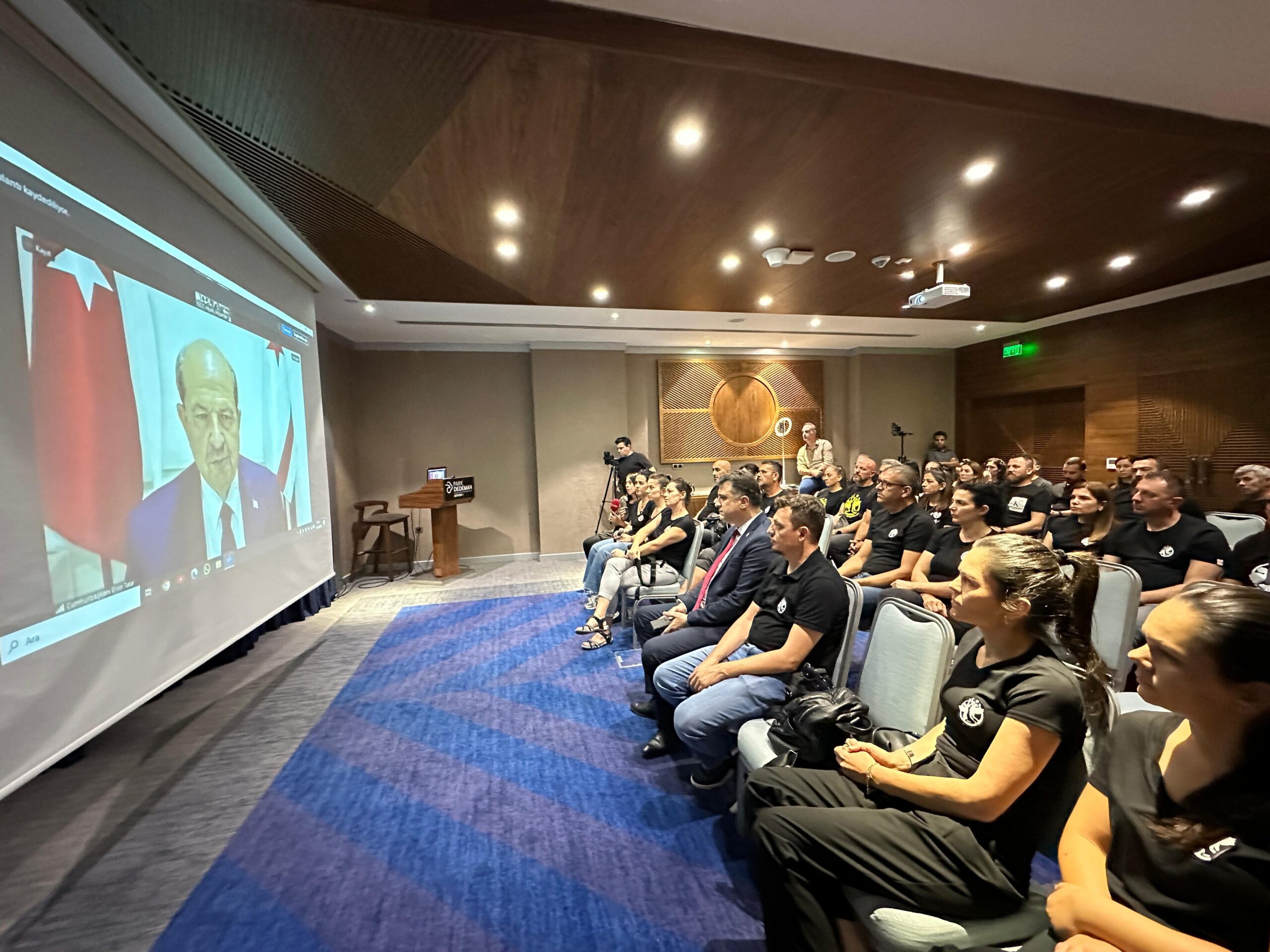 Cumhurbaşkanı Ersin Tatar heyetin Adıyaman’a geldiği saatlerde internet üzerinden canlı bağlantıyla Şampiyon Meleklerin ailelerine hitap etti.