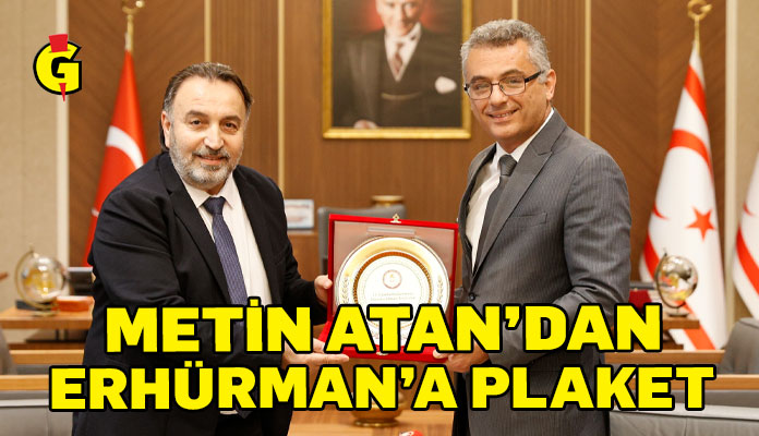 KAMUSEN Başkanı Metin Atan da, Cumhurbaşkanı Erhürman’a görevinde başarılar diledi ve plaket takdim etti.