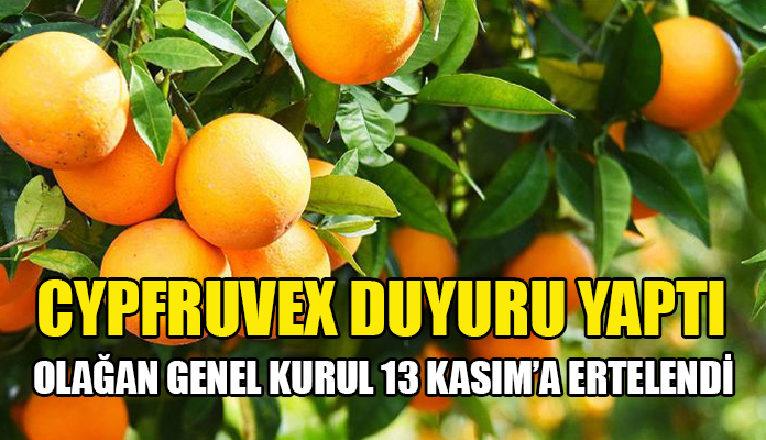 Kıbrıs Meyve Sebze (Cypfruvex) İşletmecilik Ltd. kamuoyuna açıklamada bulunarak, yapılması planlanan Olağan Genel Kurulu’nun ertelendiğini belirtti.
