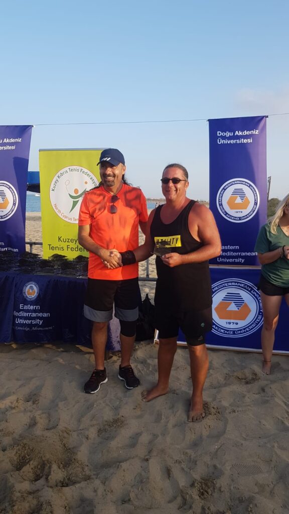 Kuzey Kıbrıs Tenis Federasyonu ile Doğu Akdeniz Üniversitesi Spor İşleri Müdürlüğü tarafından düzenlenen plaj tenis turnuvası Doğu Akdeniz Üniversitesi (DAÜ) deniz tesislerinde (Beach Club) 2 gün boyunca 5 kategoride zevkli, kaliteli ve çekişmeli geçen karşılaşmaların ardından kategorilerinde şampiyonlar belli oldu. Plaj Tenis turnuvası lisanslı çift erkeklerde Andreas Artemio-Sotiris Konstantinov, karışık çiftlerde Saadet Aktuğlu-Mehmet Sonat, lisansız çift bayanlarda Özen Doğacan-Ayşe Mullacuma, çift erkeklerde Tancan Kemaller-Aydın Kayol, karışık çiftlerde ise Ayşe Mullacuma-Aydın Kayol birinci oldu. Turnuvada özel ödüller ise en yaşlı oyuncu Andreas Artemio, en genç oyuncu Kaya Halkseven, en iyi amatör bayan Kutlay Halkseven, en iyi amatör erkek Nejat Abdullahoğlu, en değerli oyuncu Sotiris Konstantinov seçildi.