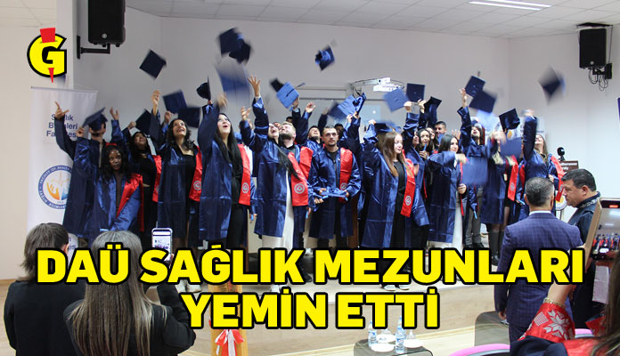 DAÜ Sağlık Bilimleri Fakültesi bünyesindeki Fizyoterapi ve Rehabilitasyon, Hemşirelik, Sağlık Yönetimi ile Egzersiz ve Spor Bilimleri Bölümleri’nden mezun olan lisans öğrencileri ile Ağız ve Diş Sağlığı, Anestezi, Ameliyathane Hizmetleri, Diyaliz, Fizyoterapi, İlk ve Acil Yardım, Radyoterapi, Tıbbi Görüntüleme Teknikleri ve Ortopedik Protez-Ortez ön lisans programlarından mezun öğrenciler, bölüm başkanları ve program koordinatörleri eşliğinde kendi alanlarına özgü yeminleri okudu.