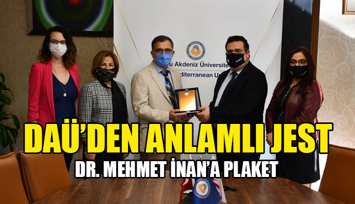 Doğu Akdeniz Üniversitesi, (DAÜ) Sağlık Bilimleri Fakültesi’nde 20 Eylül 2010 – 18 Temmuz 2020 tarihleri arasında hizmet veren Dr. Mehmet İnan’a teşekkür plaketi takdim edildi. Plaket, DAÜ Rektörlük makamında Rektör Prof. Dr. Aykut Hocanın tarafından takdim edildi. Prof. Dr. Hocanın gerçekleştirdiği konuşmasında DAÜ Sağlık Bilimleri Fakültesi’nin kuruluşundan itibaren Fakülteye verdiği hizmetler için Dr. İnan’a teşekkürlerini iletti.