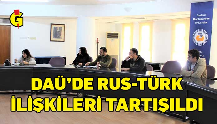Doğu Akdeniz Üniversitesi (DAÜ) Kıbrıs Politikalar Merkezi (KPM) ile İşletme ve Ekonomi Fakültesi, Siyaset Bilimi ve Uluslararası İlişkiler Bölümü iş birliği ile “Rus-Türk İlişkileri: Eşsiz Çatışmalı İş Birliğini Anlamak” konulu seminer gerçekleştirildi