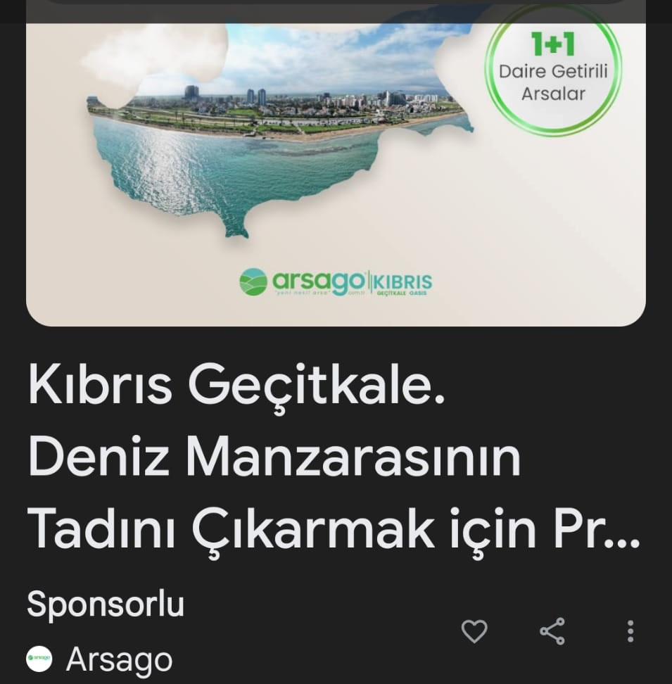 Ülkemizin son yıllardaki en büyük gelişim gösteren ve ilgi gören yerleşim yeri İskele’nin ardından İskele’ye yakın yerleşim bölgelerinde de yeni yatırımlar hayat bulmaya başladı. Ülkemizin köklü inşaat firmaları tarafından Geçitkale bölgesinde hayata geçirilen projelerin yanı sıra, Türkiye merkezli ‘Arsago’ isimli bir firma tarafından Geçitkale’de pazarlanmaya çalışılan arsalara ilişkin sosyal medyada yapılan reklamlar ise şaşkınlık yarattı. En yakın deniz kıyısına 20 km uzaklıkta olan Geçitkale’deki arsaların ‘deniz manzaralı’ olarak lanse edildiği ve pazarlanmaya çalışıldığı ortaya çıktı.