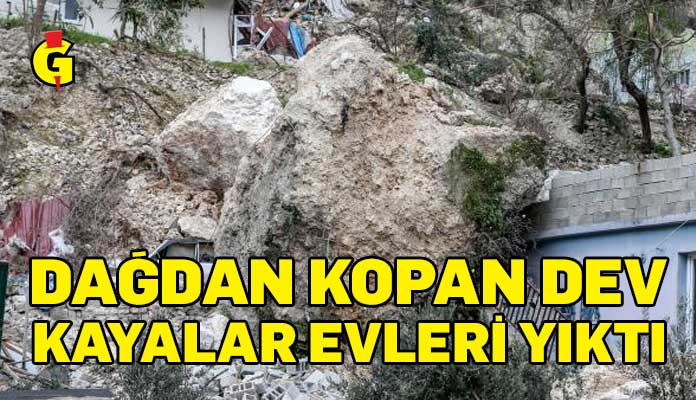 Depremde yıkılmayan evleri dağdan kopan kayalar yıktı