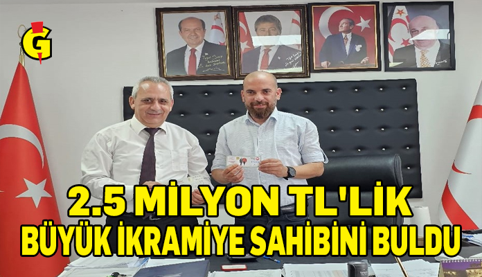 Başbakanlık Piyangolar Biriminden verilen bilgiye göre, 2.5 milyon TL’lik büyük ikramiyeyi bilet sahibi adına Capital Bankası Gönyeli Şube Müdürü Ahmet Sertuğ teslim aldı. İkramiyeyi kazanan 27284 numaralı bilet Lefkoşa bayisi Mehmet Konar tarafından satılmıştı.