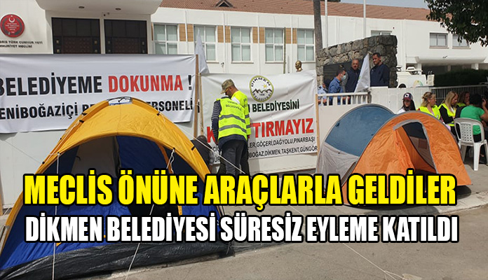 Dün Yeniboğaziçi Belediyesi’nin dün Meclis önünde başlattığı “Belediye Reformu’na” karşı belediyelerin kapanmasına hayır demek amacıyla süresiz eyleme başlamıştı. Dikmen Belediyesi bu sabah meclis önünde bekleyişini sürdüren Yeniboğaziçi Belediyesine destek olmak amacıyla araç ve personeliyle meclis önüne geldi.