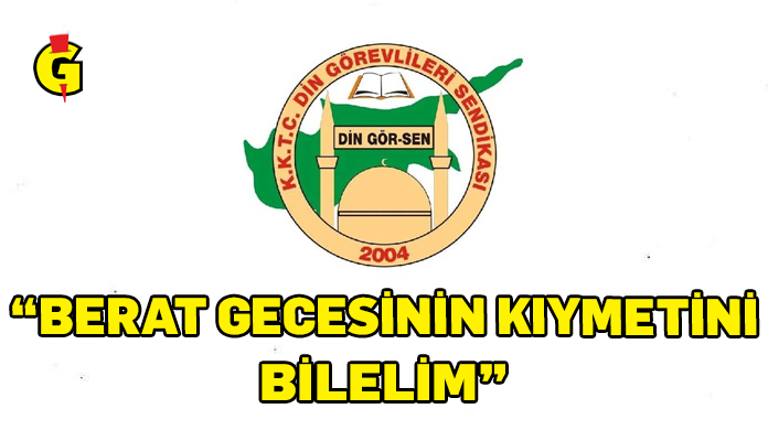 KKTC Din Görevlileri Sendikası (DİN GÖR-SEN), Berat Kandili nedeniyle mesaj yayımlayarak, “Berat gecesine kavuşmuş olmaktan dolayı yüce Rabbimize hamd ve şükür ederiz.” ifadelerine yer verdi.