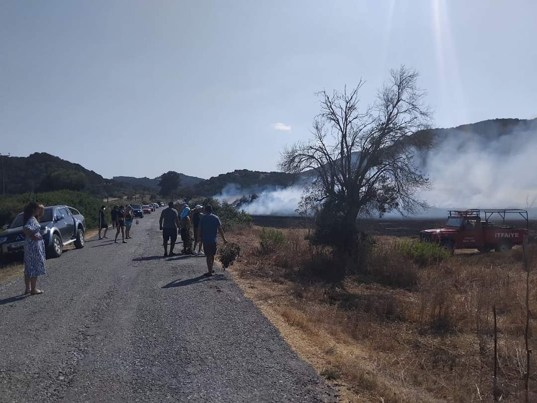 Dipkarpaz Zafer Burnu Anayolunda bugün öğleden sonra meydana gelen yangın 10 dönüm arpa kalemi olan arazi küle döndü. Anayol kenarında bir anda büyüyen yangına yoldan geçenler ve bölgeye giden ziyaretçiler tarafından yapıldı. Dipkarpaz İtfaiyesinin erken müdahalesi yangının kısa sürede kontrol altına alınmasını sağlarken, yangının yoldan geçen araçtan atılan izmarit sonucu çıktığı tahmin ediliyor. Bölge halkı Dipkarpaz’a İtfaiye Şubesi’nin kurulması ile bir çok yangına erken müdahale edildiğini söyleyerek itfaiye personeline teşekkür etti.