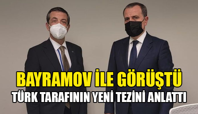 Dışişleri Bakanlığından yapılan yazılı açıklamaya göre, Bakan Ertuğruloğlu, mevkidaşı Bayramov ile görüşerek, Kıbrıs konusunda Türk tarafının yeni tezini (Kıbrıs’ta egemen eşitlik temelinde iki devletli çözüm) anlattı.