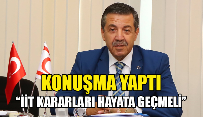 Dışişleri Bakanı Tahsin Ertuğruloğlu konuşmasında, Kıbrıs Türk halkına uygulanan insanlık dışı izolasyonun kaldırılmasını öngören İslam İşbirliği Teşkilatı (İİT) kararlarının artık hayata geçirilmesinin zamanının geldiğini vurguladı.