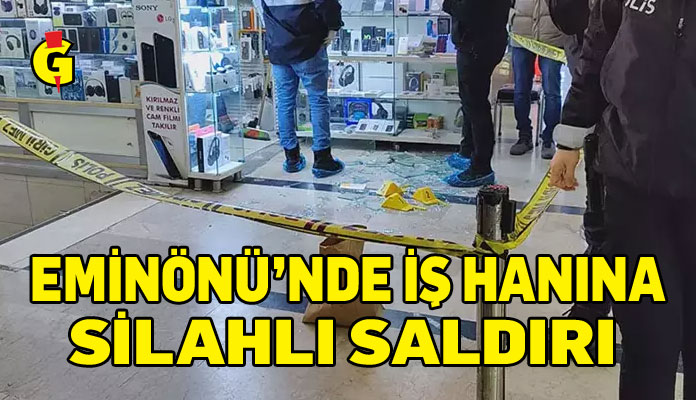 İstanbul Eminönü’nde bulunan Doğubank iş hanının giriş katındaki iş yerinin vitrinine ateş açıldı. Şüpheli kaçarken, çevredekilerin başka bir iş yerine sığındığı anlar güvenlik kamerasına saniye saniye yansıdı.