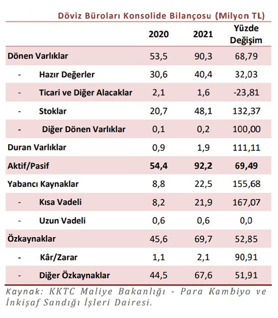 KKTC Merkez Bankası raporunda döviz bürolarının 2021 yılı verileri açıklandı: