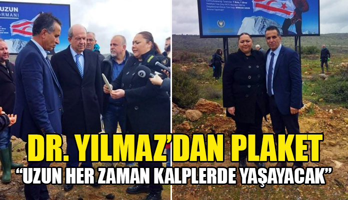 Lefke Yardım ve Halk Derneği Başkanı Dr. Emel Yılmaz tarafından Birkan Uzun’un babası Cengiz Topel Uzun’a plaket takdim edildi.