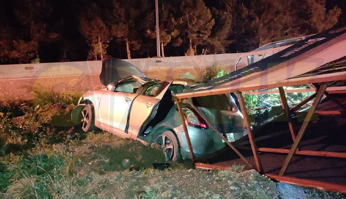 Mağusa’da bu gece yarısı meydana gelen trafik kazasında 25 yaşındaki Tahsin Tilki ağır yaralandı. GIYNIK GAZETESİ’NİN elde ettiği ilk bilgilere göre Salamis Hotel yakınlarında 00.30 saatlerinde yönetimindeki PE 849 plakalı salon aracının direksiyon hakimiyetini kaybeden Tilki yoldan çıkarak reklam panosuna çarparak tarlaya savruldu. Ağır yaralanan genç, yoldan geçenlerin yardımı ile araçtan çıkarıldı. Ağır yaralanan Tahsin Tilkinin Mağusa, Hastanesi yoğun bakımda tedavi altına alındı.