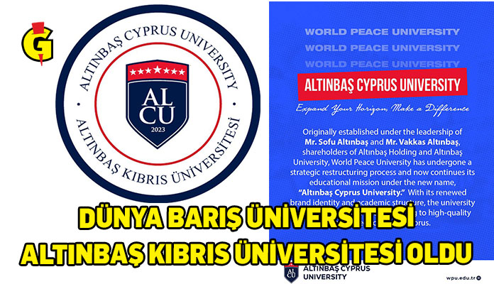 Altınbaş Kıbrıs Üniversitesi Rektörlüğü’nden yapılan açıklamada, üniversitenin adının kurumsal kimliği güçlendirmek amacıyla, Dünya Barış Üniversitesi’nden Altınbaş Kıbrıs Üniversitesi’ne değiştirildiği duyuruldu.