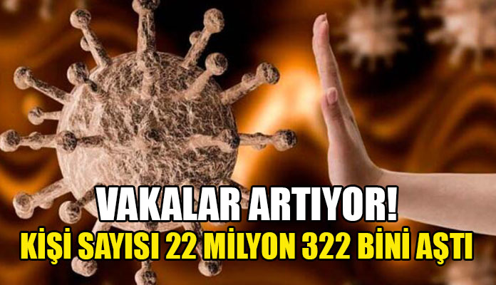 Vaka sayısı dünya genelinde 22 milyon 322 bin 205’e çıkarken, virüs saptanan 15 milyon 62 bin 975 kişi sağlığına kavuştu.