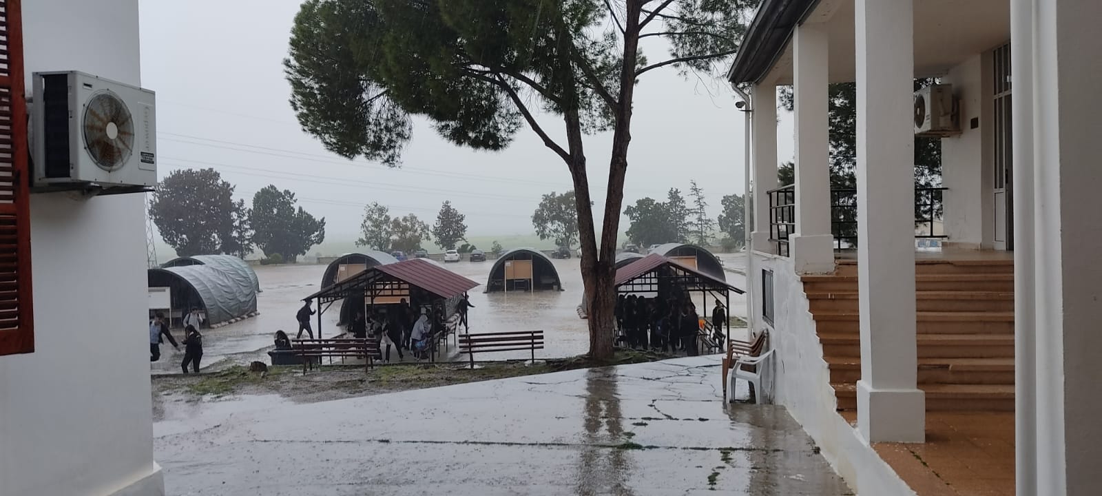 Tepkilere kulak tıkayan Bakanlık çareyi çadırlarda bulurken, Geçitkale Cumhuriyet Lisesi avlusuna kurulan çadırlar su altına kaldı. Sağanak yağmurun bastırması ile çadırlarda eğitim gören çocuklar da çadırlar da çamura battı. Ani bastıran sağanak yağmurun ardından okulda eğitim gören 260 öğrenci ders başı yapamadan evlere dağıldı. Okul müdürü Ahmet Billuroğlu, bu koşullarda eğitime nasıl devam edecekleri hususunda ne yapacaklarını bilmediklerini kaydetti.