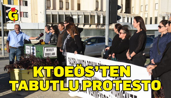 KTOEÖS Başkanı Selma Eylem, burada yaptığı konuşmada, laik eğitim ve öğretmenin gözden çıkarıldığını ileri sürerek, “tabutu” da “kamusal eğitim”, “yasalar”, “tüzükler”, “çocuk hakları”, “öğretmen hakları” ve “öğretmenlerin çalışma koşulları”nı temsilen ortaya koyduklarını söyledi.