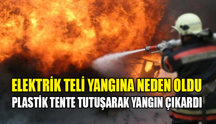 Yangın sonucu, iki iş yerine ait plastik tenteler yanarak zarar gördü.
