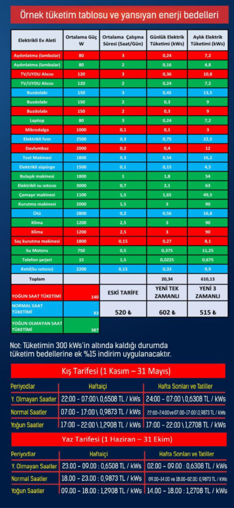 1 Kasım – 31 Mayıs tarihleri arasında uygulanacak kış tarifesinde periyodlar şöyle: