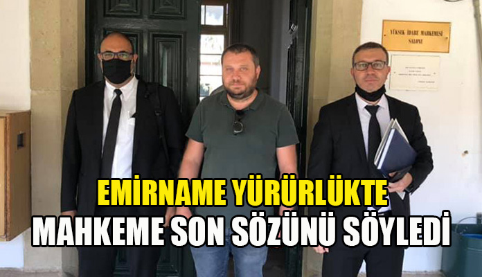 Kıbrıs Türk Mühendis ve Mimar Odaları Birliği ile Şehir Plancıları Odası’nın açmış olduğu YİM davası ile Başbakan’ın “sehven” yayınlandı diyerek emirnameyi kaldırması kararına ara emri alındı. Mahkeme, 15 Temmuzda çıkarılan emirnamenin devam ettiğini belirtti.