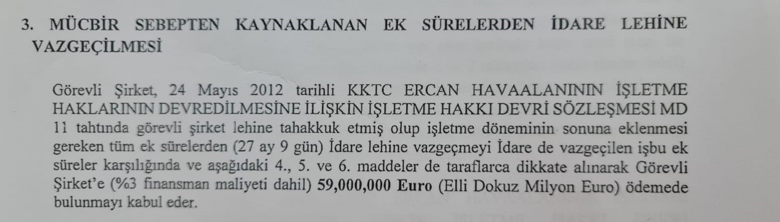 “2012 yılında imzalanan Ercan Özelleştirme İhalesi’nin İdari ve Teknik Şartnamesi, hukuken daha sonra imzalanacak olan ek sözleşmelere zemin teşkil etmek zorundadır. Daha sonra imzalanan ek sözleşmelerin bu şartnameye uygun olması gerekmektedir. İdari ve Teknik Şartname ’de mücbir sebep ile ilgili kıstasların açık ve net bir şekilde yazıyor olmasına ve yapılacak olan havalimanının uluslararası havacılık standartlarına uygun olması yükümlülüğüne rağmen, UBP-DP-YDP Hükümeti bu yasal yükümlülüklerini görmezden gelerek 60 milyon Euro’yu T&T şirketinin kasasına koyacaktır” diyen Şahiner, “Hükümet yine yandaşlarına rant aktarmanın en etkin ve kestirme yolunu aramanın ve bulmanın peşindedir. Bunun için de yine her zamanki gibi hukuku yok saymaktadır” şeklinde konuştu.