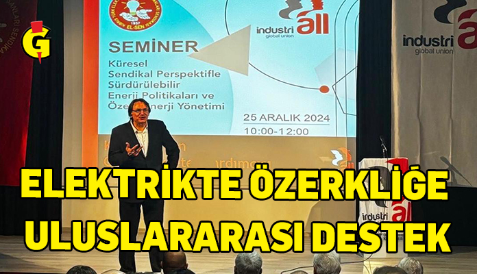 IndustriALL Global Sendika Genel Sekreter Yardımcısı Kemal Özkan, EL-SEN tarafından düzenlenen “Küresel Sendikal Perspektiften Sürdürülebilir Enerji Politikaları ve Özerk Enerji Yönetimi” konferansında, enerji üretimi ve dağıtımının kamu yararına olacak şekilde yönetilmesi gerektiğini belirterek, EL-SEN’le olan dayanışmalarını vurguladı.