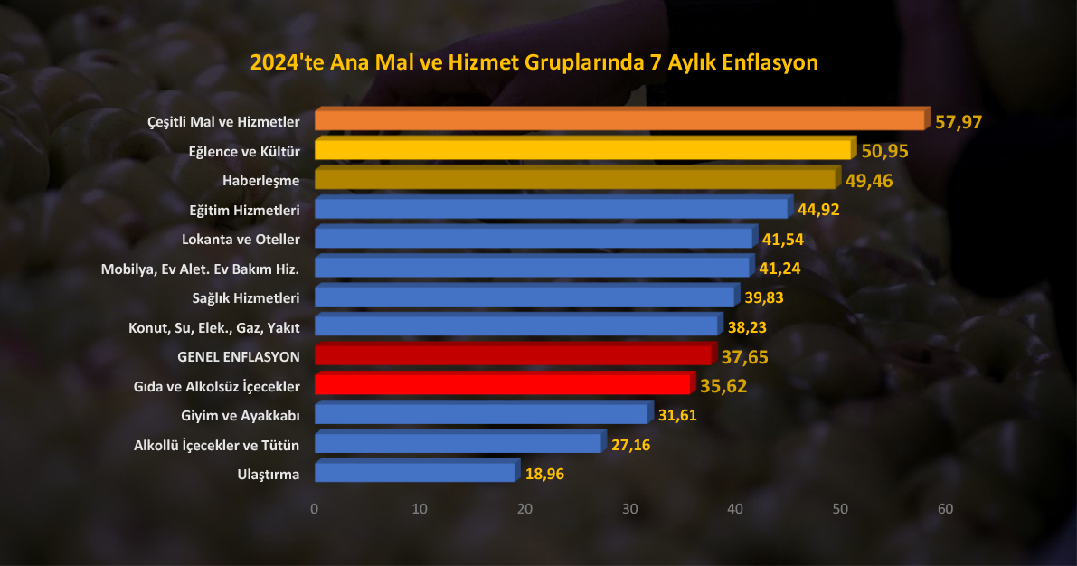 Kurumun açıklamasına göre, bir önceki aya göre, endekste kapsanan 503 maddenin ortalama fiyatlarında artış; sadece 67 maddenin ortalama fiyatlarında ise düşüş hesaplandı. En yüksek fiyat artışı gösteren ilk üç mal; %163.64 magazin ve dergi (aylık, kod:1); %93.97 maydanoz ve %91.61 ile kırmızı lahana oldu. En yüksek fiyat düşüşü gösteren ilk üç mal ise; %40.90 kavun; %40.30 patlıcan ve %25.18 ile taze bamya olarak açıklandı.