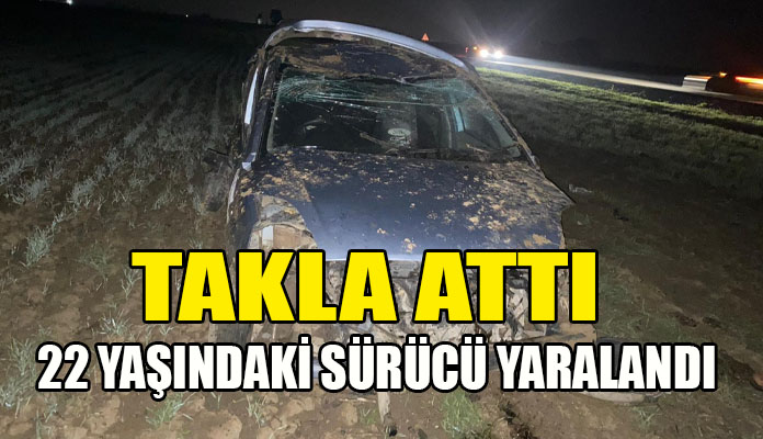 Ercan Gaziköy yolu üzerinde dün gece saat 23.00’te batı istikametinden doğu istikametine doğru seyreden GU 569 plakalı araç sürücüsü 22 yaşındaki Süleyman ÇAVUŞOĞLU, dikkatsizliği sonucu o esnada gidiş istikametine doğru yolun solundan çıkarak toprak sete çarpıp takla attı.