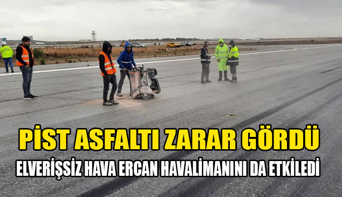 Elverişsiz hava koşulları nedeniyle uzun yıllardır yenilenmeyen Ercan Havalimanı pistinde hasar meydana geldi.