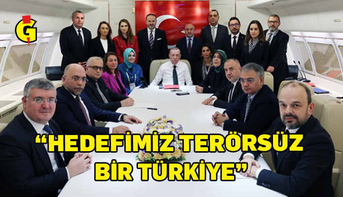 Bir gazetecinin, “Türkiye, terörle mücadelesinde büyük mesafe aldı. Bundan sonra terörle mücadele nasıl devam edecek? ‘Terörsüz bir Türkiye inşa edelim’ demiştiniz, bu nasıl olacak?” şeklindeki soru üzerine Erdoğan, şöyle konuştu: “Terörle mücadeleden kesinlikle taviz vermemiz mümkün değil. Bu, kararlılıkla devam edecek ve terörü kaynağında yok etme politikamızı yine aynen sürdüreceğiz. Bundan da taviz söz konusu değil. Teröre sebep olan siyasi ve toplumsal nedenlerden finansal kaynaklara, dış desteklere kadar geniş bir yelpazede mücadele stratejisi belirledik. Bu stratejiyi çok boyutlu ve daha kapsamlı bir şekilde devam ettireceğiz. Şunun bilinmesini isterim, teröristler kukladır, bunlar taşerondur. Bizim hedefimiz terörsüz bir Türkiye’dir. Bundan taviz vermeyeceğiz, veremeyiz. Hedefimiz tam bağımsız, bir, bütün ve müreffeh Türkiye’dir.