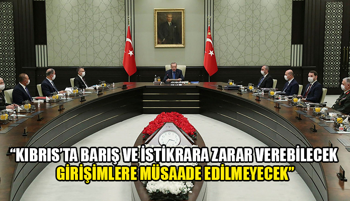Kıbrıs'taki Türk toplumunun mevcudiyeti ile haklarını görmezden gelen ülkelerin ve aktörlerin, Ada’da barış ve istikrar ortamına zarar verebilecek girişimlerine hiçbir suretle müsaade edilmeyeceğinin altı çizildi