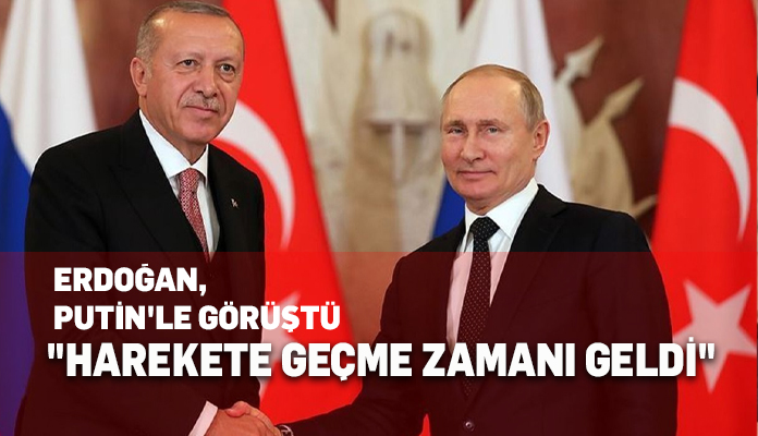 Cumhurbaşkanı Erdoğan ardından Rusya Devlet Başkanı Vladimir Putin’le görüştü. Cumhurbaşkanlığı İletişim Başkanlığından yapılan açıklamaya göre, Cumhurbaşkanı Erdoğan Birleşmiş Milletler’in Karadeniz’de tahıl ihracı için güvenli koridorlar oluşturulması planıyla ilgili olarak harekete geçme zamanının geldiğini belirtti.