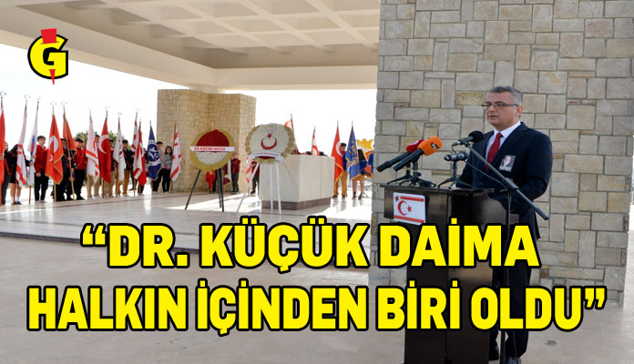 Cumhurbaşkanı Erhürman yaptığı konuşmada, Kıbrıs Türk halkının yakın tarihine yön vermiş, mücadelemizin en zor ve kırılgan dönemlerinde halkının önünde değil, halkının içinde yürümüş büyük bir lider olan Dr. Fazıl Küçük’ü saygı ve minnetle anmak üzere toplandıklarını belirtti. Dr. Fazıl Küçük’ü toplum lideri yapan en önemli özelliğin makam ve unvanların arkasına saklanmadan halkı ile aynı sokakları paylaşması, aynı kaygıları paylaşması ve aynı umuda tutunması olduğuna işaret eden Erhürman, “O yalnızca kürsülerden değil, evlerden, kahvehanelerden, tarlalardan, hastane koridorlarından da konuşan bir liderdi. İşte bu yüzden Dr. Fazıl Küçük, halkın gözünde hiçbir zaman yukarıda olmadı. Daima halkın içinden, içimizden birisi oldu” dedi.