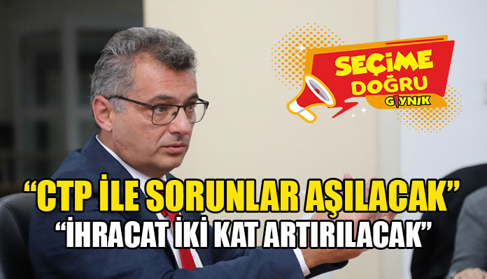 Cumhuriyetçi Türk Partisi (CTP) Genel Başkanı Tufan Erhürman, 23 Ocak’tan sonra CTP iktidarında Mersin Kapısı ve Yeşil Hat Tüzüğü’ndeki sorunların süratle aşılacağını söyledi ve ihracatın en az iki kat artırılacağını vurguladı.
